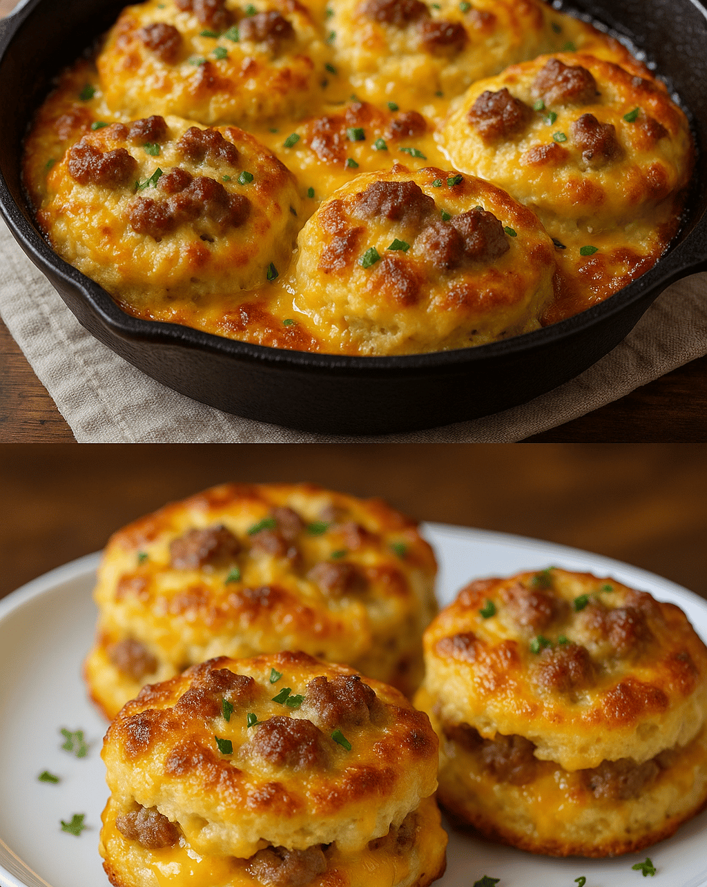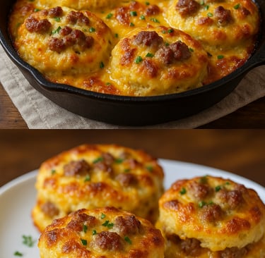 Rich, buttery biscuits loaded with sausage and melted cheddar cheese, perfect for any morning.