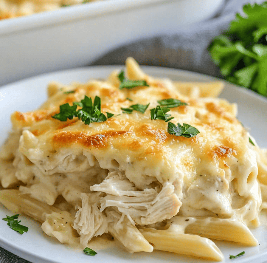 🍽️ Dump & Bake Cheesy Chicken Pasta